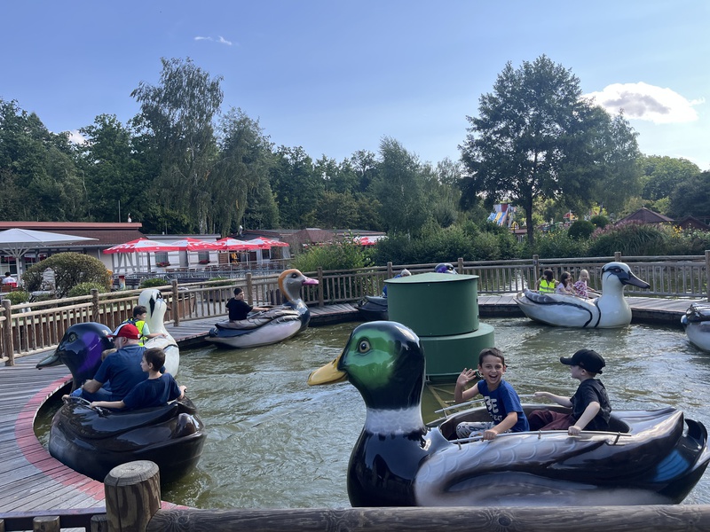 Unter den zahlreichen Freizeitattraktionen des Parks fanden die Riesen-Rutsche, der Wasserbob und das Entenkarussell den größten Zulauf. Sie sorgten für Begeisterung und jede Menge Spaß. Viele Kinder nutzten anschließend die Zeit, um sich zu stärken. Eine Portion Pommes, ein Würstchen oder auch ein Eis sorgten für die perfekte Ergänzung an einem Tag, der uns noch lange in Erinnerung bleiben wird. Ein besonderer Dank geht an den Förderverein, der uns durch die Übernahme der Kosten für die Busfahrt toll unterstützt hat.