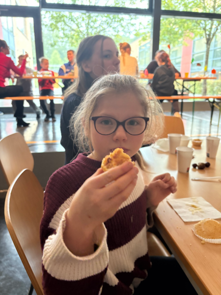 Mancher Nachwuchskoch probierte auch mal etwas, was sonst nicht auf dem eigenen Teller landet und wurde hierbei nicht enttäuscht. Und so waren die Kinder der Klassen zwei bis vier, die die Gerichte hergestellt hatten, zu Recht stolz auf ihre Küchenkünste.