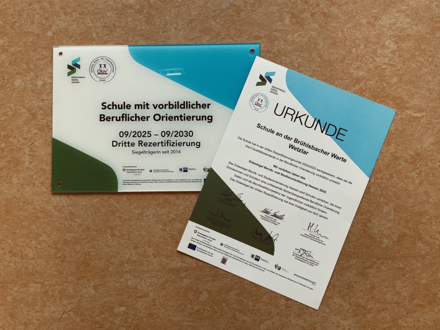 Die Schule an der Brühlsbacher Warte (SBW) zählt in diesem Jahr zu den Preisträgern des Umweltschutzpreises der Stadt Wetzlar. Mit unserem Projekt „SBW-clean up nature“, welches sich zum Ziel gesetzt hat, die vermüllte Umgebung unserer Schule durch regelmäßige Müllsammelaktionen zu verbessern und das Bewusstsein für Umweltschutz bei Schülerinnen und Schülern sowie der Schulgemeinschaft zu stärken, konnten wir die Jury überzeugen. Gleichwertig ausgezeichnet mit der Jagdgemeinschaft Revier Wetzlar I und der Kita „Mullewapp“ erhält die SBW ein Preisgeld von 300 Euro. Die Urkundenverleihung fand am Freitag, dem 24.10.25, im Rahmen eines Besuchs des Naturschutzbeirates der Stadt Wetzlar statt.