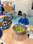 Für die Vorspeise war die Klasse 3a verantwortlich. Sie bereitete Kartoffeln und würzigen Herbstquark zu, der später stilecht im Glas serviert wurde.